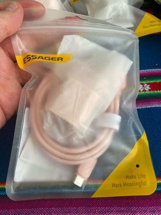 Vendo un juego de cargador y cable ESSAGER de 20W. El set incluye un cargador GaN de color rosa y un cable de carga rápida. Es un artículo elegante y compacto, ideal para viajes. - Cargador GaN de viaje - Cable de datos con carga rápida - Carga rápida PD