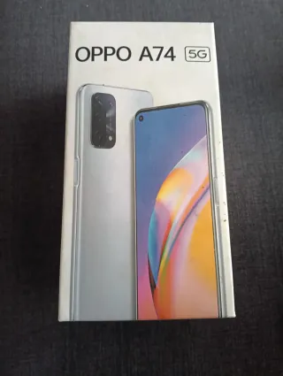 Teléfono móvil OPPO A74 5G en color plata. Incluye funda protectora. - Funda protectora incluida Protector de pantalla incluido Cargador