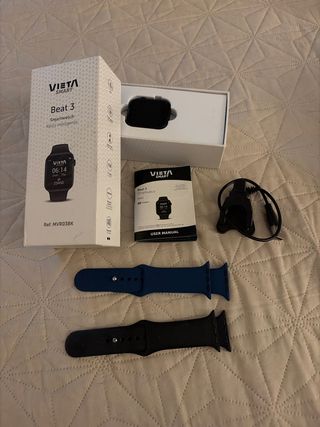 Smartwatch Vieta Beat 3 con correas intercambiables. - Incluye correa azul, correa negra y cargador. - Modelo: Beat 3. - Referencia: MVR03BK.