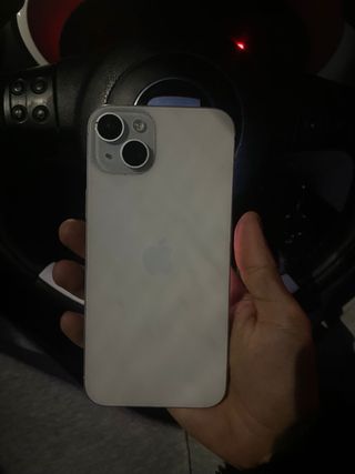 Teléfono móvil iPhone 15 Plus de Apple. Se vende iphone 15 plus en buen estado algunas marcas de uso pero no afecta a su funcionamiento comprado en mediamarkt en mayo de 2024 Bateria al 87% Se vende por cambio de teléfono Se entrega con caja y cargador original, una funda transparente y cristal templado nuevo ya que este esta roto pero es solamente el cristal templado. Algo negociable - Pantalla grande. - Diseño moderno.