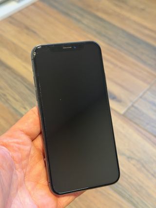 Teléfono móvil iPhone X en color gris espacial. Cuenta con una capacidad de almacenamiento de 64GB. Funciona perfectamente. Siempre se ha usado con funda y protector. Solo tiene un toque en la esquina superior izquierda que se puede ver en las fotos. Marcas de uso residuales en los bordes. Se vende en su caja original y sin cargador. Batería al 73%. Preferentemente entrega en mano.