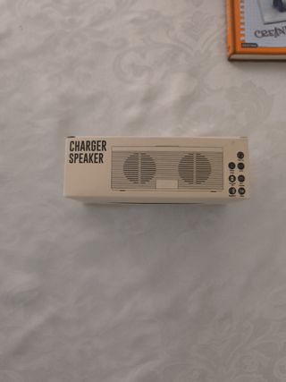 Lámpara, altavoz y cargador de movil todo en uno. Tiene 3 intensidades de luz, muy agradables, que se regulan de manera táctil. Altavoz con buen sonido. Está nuevo porque mi padre se equivocó y nadie en la família tiene un mòbil compatible para cargarlo.