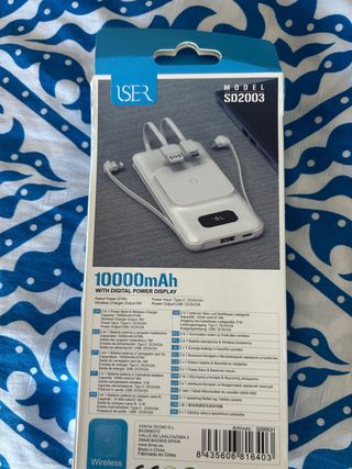 Batería externa de la marca Fresh and revel, funciona todo bien y se ha usado poco. La carcasa es de un material que se queda pegado y no he podido limpiarlo, no influye en su uso y funciona perfecto.