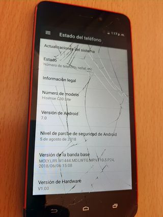 ➡️ Movil android 7.0 , para piezas. ⚠️ Táctil funciona pero está rajado. ⚠️ Estética con signos de desgaste. 📸 Se entrega tal y como se ve en las fotos. ✅ Enciende, carga, sonido OK. 👍 Restauración de fábrica. Sin cuentas. Sin más pruebas. ❌ Se entrega sin cargador. ✳ Tal y como se ve y se describe. No sé más de lo que pone. 📦 Lotes y envíos sólo por wallapop. ❌ No se aceptan devoluciones.