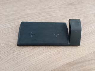 Base de carga inalámbrica negra, en perfecto estado. - Carga inalámbrica. - Diseño plegable y compacto. - Entrada: 12V/2A, 9V/2A, 5V/3A.