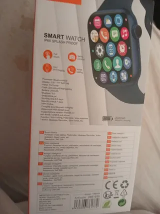 Pulsera de actividad inteligente en color negro en su caja original .Incluye cargador - Pantalla digital. - Diseño deportivo y moderno. -Correa ajustable, lo único que da algo de muestra de su uso.