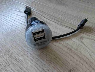 Dispositivo Vieta Pro que combina manos libres y cargador USB. - Diseño compacto y elegante. - Puerto USB para carga.