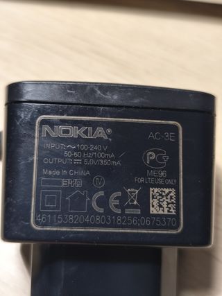 Cable conector y cargador de móvil Nokia. USB a mini USB.