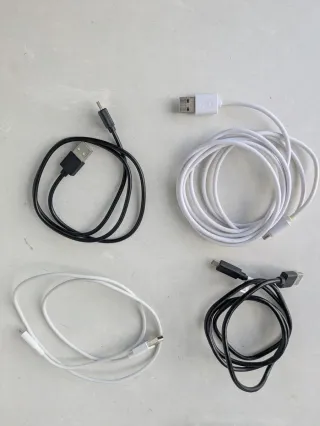 Lote de cables Micro USB en color negro y blanco. Ideales para cargar y transferir datos. - Dos cables negros. - Dos cables blancos.