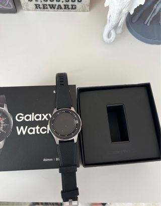 Vendo Samsung Galaxy Watch de 46mm (versión Bluetooth) en color plateado con correa negra. El reloj es un clásico de Samsung conocido por su gran autonomía y su bisel giratorio para navegar por los menús. • Estado: Muy buen estad. • Caja original: Se incluye la caja original en perfectas condiciones. • Accesorios incluidos: Cargador completo y protector de pantalla/cuerpo instalado (o incluido) para mayor seguridad. • Características principales: • Pantalla circular Super AMOLED. • Bisel giratorio funcional. • Resistente al agua (apto para natación). • Seguimiento de actividad física, sueño y ritmo cardíaco. • Altavoz integrado