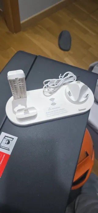 Base de carga inalámbrica 3 en 1, en perfecto estado. - Carga inalámbrica para teléfono móvil. - Carga inalámbrica para auriculares. - Carga inalámbrica para reloj inteligente.