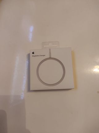 Cargador inalámbrico MagSafe de Apple para iPhone. - Diseño circular. - Cable integrado.