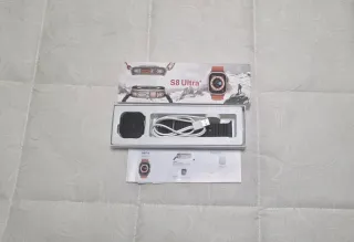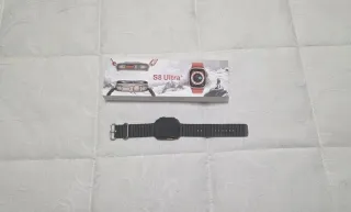 Smartwatch S8 Ultra con un diseño moderno y elegante. - Incluye cargador. - Correa de color negra y detalles plateados.