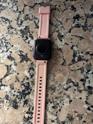 Vendo un smartwatch en color rosa. Está en buen estado. - Correa de silicona. - Pantalla cuadrada.