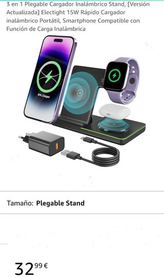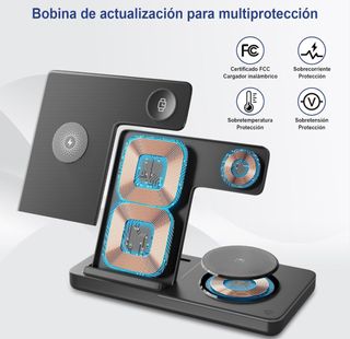 • Potencia de salida máxima de 30W • Compatible con múltiples marcas: este soporte de almohadilla de cargador es compatible con teléfonos Apple iPhone, Samsung y Xiaomi. • Conector tipo C: • Con luz LED Salida: 5W/7,5 W/10W/15W/20W/30W (30W máx. se cargará más rápido que otros) Eficiencia de carga: >75% Frecuencia de carga: 110 - 205 KHz Nota:solo compatible con móviles de carga inalámbrica