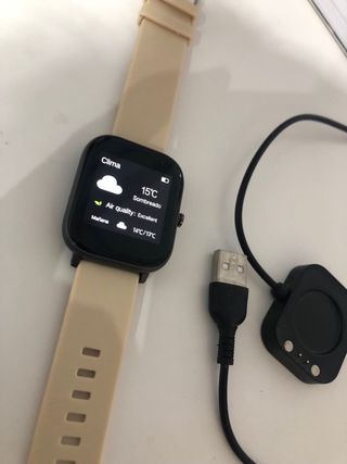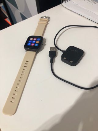 Smartwatch en color negro con pantalla de 44mm. Nuevo a estrenar - Diseño moderno y elegante. - Correa cómoda para uso diario. - Incluye cargador, correa y protector