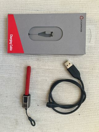 Dos cables cargadores para dispositivos Coros. - Un cable es de color negro. - El otro cable es de color rojo.