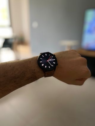 SmartWatch Amazfit GTR 2 redondo negro de diseño elegante con pulsera de cuero color camel que se compró a parte. El reloj funciona perfectamente, tiene menos de dos años, es la versión más potente de 2022 y la batería dura varios días, aunque tiene toques en los laterales (como se muestra en la foto) y algo de desgaste en esa correa. Puede taparse con cualquier protector o pintarse. Vendo por adquirir el Apple Watch Ultra. Nuevo vale 150€ + correa de 30€= 180€. Conservo la caja original. Viene con cargador y además con correo negra de silicona nueva, no se ha llegado a usar. Hago envíos solo en Wallapop.