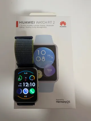 Smartwatch Huawei Watch Fit 2 con pantalla Fullview de 1.74 pulgadas. No tiene ni un rasguño, siempre ha estado con protector de pantalla. Incluye la caja original y el cargador original. De regalo una correa extra, 3 protectores de silicona y unos ganchos para nuevas correas. Características: - Pantalla: 1.74-inch HUAWEI Fullview Display. - Conectividad: Bluetooth. - Funciones: Llamadas Bluetooth, Gestión de Vida Saludable. - Sistema Operativo: Powered by Harmony OS.