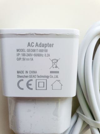 Cargador de corriente para dispositivos con conector mini USB. - Tipo de enchufe: Europeo (EU) y Reino Unido (UK). - Salida 5V. 1A.
