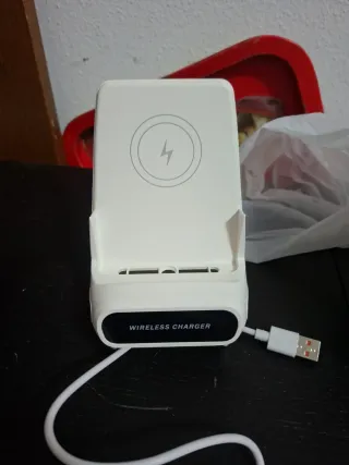 Base de carga inalámbrica en color blanco. - Diseño vertical. - Indicador de carga. - Conexión USB.