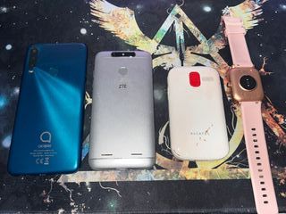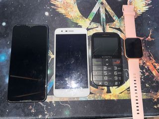 Lote de dos teléfonos móviles y un reloj inteligente. - 2 teléfonos móviles Alcatel. - Un teléfono móvil Gris ZTE. - Un reloj inteligente con correa rosa. (No se enchufa, sin cargardor) Lote variado de 3 teléfonos móviles táctiles rotos. Sin cargadores, algunos se enchufan. Algunos funcionan, pero no se garantiza el funcionamiento de ninguno. Son para piezas, coleccionistas o reparaciones. No devolución.