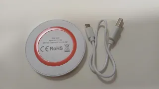 Vendo cargador inalámbrico circular modelo Radik 5324, color blanco con aro antideslizante rojo. Estado: Nuevo, sin usar. Potencia: 5W (Carga estándar). Compatibilidad: Compatible con cualquier smartphone con tecnología Qi (iPhone, Samsung, Xiaomi, etc.). Incluye: Cable de carga Micro USB. Extras: Base antideslizante y luz LED indicadora de estado. Ideal para tener en la mesita de noche o en el escritorio. Diseño compacto y ligero.