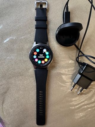 Reloj inteligente Samsung Galaxy con correa de silicona. - Esfera redonda. - Correa con cierre de hebilla. - Incluye cargador.