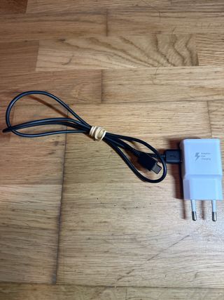 Cargador original Samsung de carga rápida. - Color negro. - Incluye cable USB. - Enchufe europeo.