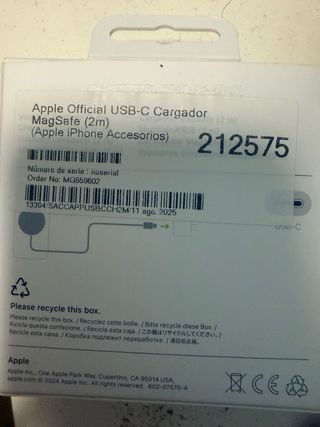 ❤️Nuevo Precintado Sellado Pack de accesorios de carga de Apple. - Adaptador de corriente USB-C de 35W. - Cable de carga USB-C de 240W (2 metros). - Cargador MagSafe. ✅ Compatibilidad Modelos de iPhone iPhone Air iPhone 17 Pro iPhone 17 Pro Max iPhone 17 iPhone 16 Pro iPhone 16 Pro Max iPhone 16 iPhone 16 Plus iPhone 16e iPhone 15 Pro iPhone 15 Pro Max iPhone 15 iPhone 15 Plus