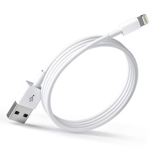 Cargador de pared blanco para dispositivos Apple. - Cable Lightning incluido. - Diseño compacto y ligero.