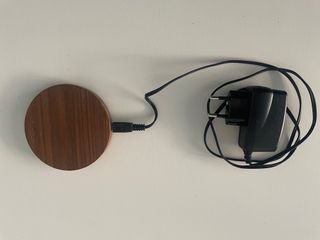 Cargador inalámbrico con acabado en madera. - Diseño redondo y elegante. - Compatible con carga de 5V y 9V.