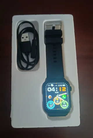 Smartwatch con correa de silicona y cargador. Funciona perfectamente, no negociable. - Pantalla táctil. - Android e Ios. - Llamadas y wasap. - Correa ajustable. - Incluye cable de carga USB.