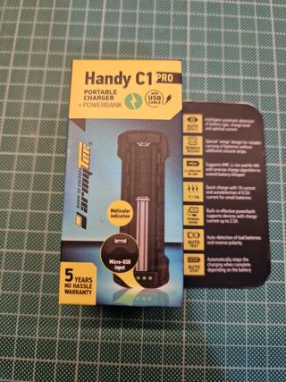 Cargador y Power Bank Armytek Handy C1 Pro con cable usb incluido. Carga IMR, Li-Ion y Ni-MH con algoritmo preciso. Ver especificaciones en fotos