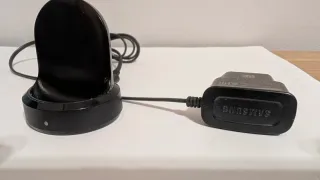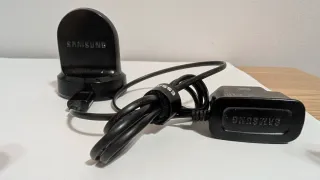 Base de carga original para relojes Samsung. Lo usaba para un Samsung Frontier S3 pero se me ha roto. - Incluye cable de carga.