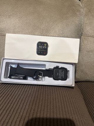 Reloj inteligente en color gris, en muy buen estado. - Correa de silicona. - Cargador inalámbrico incluido.