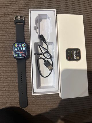 Apple Watch Series 7 – 41 mm – Negro – Como nuevo Vendo Apple Watch Series 7 de 41 mm, color negro. Modelo sin GPS. Está en estado impecable, como nuevo, siempre muy cuidado, sin golpes ni arañazos. 🔋 Salud de batería: 83 %, funciona perfectamente. 📱 Pantalla en excelente estado. ⌚ Ideal para el día a día y para deporte. Incluye: • Apple Watch Series 7 • Caja original • Correa original • Cargador Lo vendo o cambio a modelo superior. Entrega en mano o envío por Wallapop. 📌 Precio negociable dentro de lo razonable.
