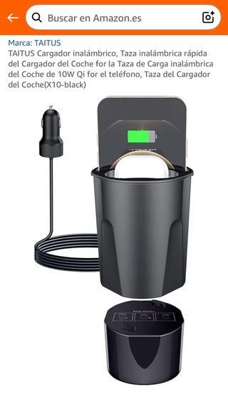 Este cargador inalámbrico para coche tiene un diseño tipo taza y carga rápida. - Carga inalámbrica rápida de 10W Qi. - Color negro.