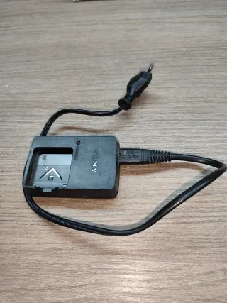 Cargador de batería para cámaras Sony. - Diseño compacto y portátil. - Indicador LED de carga.