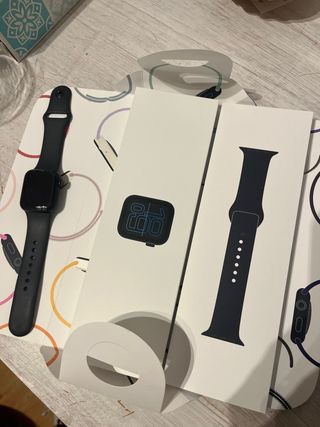 Reloj inteligente Apple Watch SE 3 40 mm en color negro y gris espacial. Incluye caja y accesorios. - Correa negra. - Caja original. Regalo cargador (cable) original que es el que viene con el reloj y una funda para el cristal del reloj Cualquier duda escribeme, lo dejo muy barato!! Esta usado dos veces contadas, entrego cajas y todo.