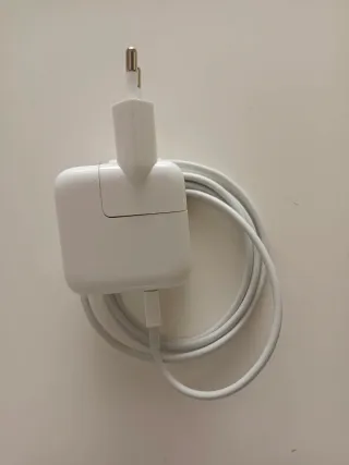 Cargador original de Apple para iPad con puerto USB. - Potencia de 10W. - Diseño compacto y blanco.