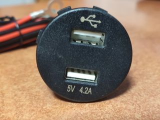 Cargador para coche con doble puerto USB, ideal para instalar de forma empotrada en salpicadero, consola central, moto, caravana o proyectos DIY. Permite cargar dos dispositivos a la vez como móviles, GPS, tablets, cámaras o power banks. Funciona correctamente y se encuentra en buen estado. Salida total 5V 4.2A, suficiente para carga rápida y estable. Diseño compacto, con tapa frontal y cableado incluido para conexión directa a 12V. Instalación sencilla mediante rosca y tuerca de fijación. Incluye Cargador empotrable doble USB Cableado de conexión