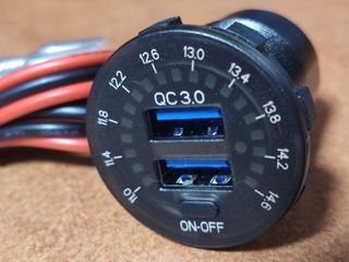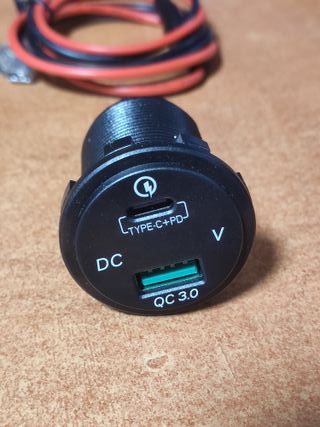 Cargador empotrable para coche o moto con doble salida: 1× USB-A Quick Charge 3.0 1× USB-C con Power Delivery (PD) Compatible con instalaciones 12V y 24V. Ideal para cargar móviles, tablets, GPS u otros dispositivos en vehículos. Incluye cableado para conexión directa. Estado estético y funcional correcto.