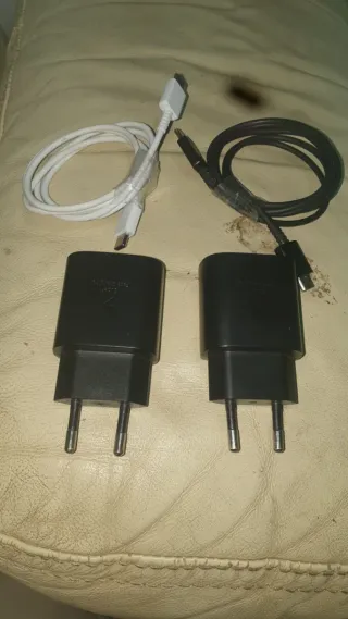 Cargador original Samsung con puerto USB-C y cable. - Incluye dos adaptadores de corriente. - Un cable USB-C a USB-C. - Un cable USB-C a Micro USB. -Precio unidad.