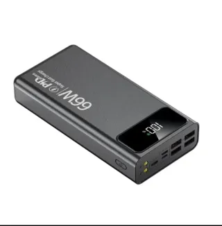 Cargador portátil power bank de 50000mAh cuenta con una batería de polímero de litio, carga rápida y capacidad de carga inalámbrica. Incluye múltiples protecciones como contra sobrecarga, cortocircuito y baja tensión. Con pantalla LED, entrada/salida Type-C y compatibilidad universal con enchufes, es ideal para uso al aire libre y viajes. El diseño ultradelgado y la alta capacidad lo hacen portátil y confiable. - Tecnología PD (Power Delivery). - Pantalla digital para mostrar el porcentaje de carga. - Múltiples puertos para conectar dispositivos.