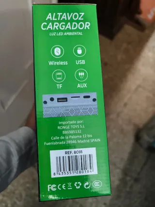 Altavoz con función de cargador y luz LED ambiental. - Carga inalámbrica - 7 colores de luz - Radio FM - Larga duración