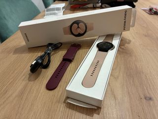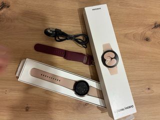 Reloj inteligente Samsung Galaxy Watch 4. - Incluye cargador. - Correa adicional de color morado. Muy poco tiempo de uso y es muy buen reloj La bateria dura mucho