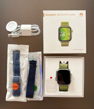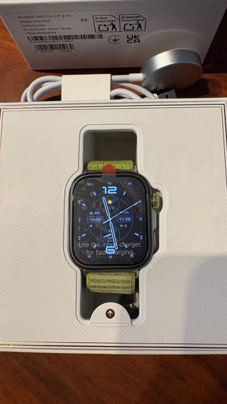Reloj inteligente Huawei Watch Fit 4 Pro con correa de nylon verde - Modelo: SYA-B29 - Comprado en agosto de 2025 - Lo vendo porque me gusta más el Apple Watch - Se entrega con caja original, cargador, factura de compra y una correa de repuesto azul -Precio negociable.