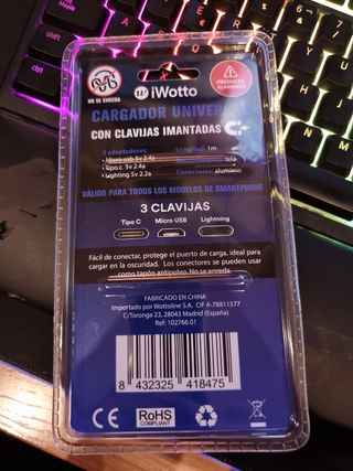 3 cabezales imantados para distintos dispositivos, cable 1m y marca owotto