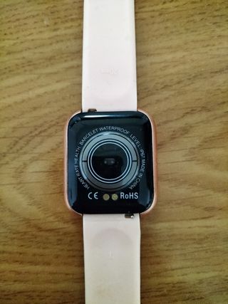 Smart Watch / Pulsera de actividad / Reloj inteligente. Correa de color rosa claro. Incluye cargador. Sin caja. Tiene opciones como la hora, mensajes, pulsaciones, gasto energético en variados deportes como correr, bailar o fútbol, y más. Poco uso. Estado perfecto y cómodo de llevar. Funcional